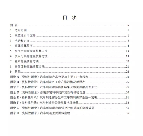 本標準規(guī)定了汽車制造廢氣、廢水、噪聲、固體廢物污染源強核算的基本原則、內容、核算方法及要求等。本標準附錄 A~附錄 H 均為資料性附錄。本標準為首次發(fā)布。
