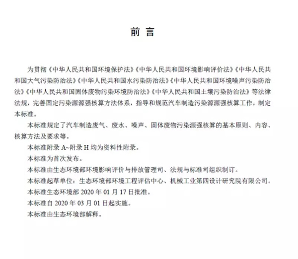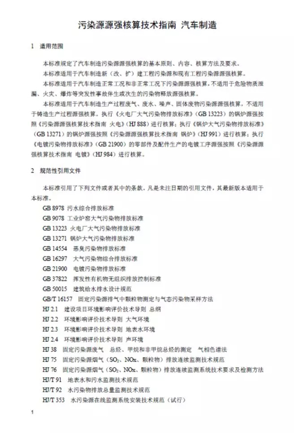 為貫徹《中華人民共和國環(huán)境保護法》《中華人民共和國環(huán)境影響評價法》《中華人民共和國大氣污染防治法》《中華人民共和國水污染防治法》《中華人民共和國環(huán)境噪聲污染防治法》《中華人民共和國固體廢物污染環(huán)境防治法》《中華人民共和國土壤污染防治法》等法律法規(guī),完善固定污染源源強核算方法體系,指導和規(guī)范汽車制造污染源源強核算工作,制定本標準。