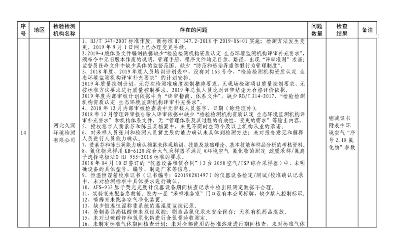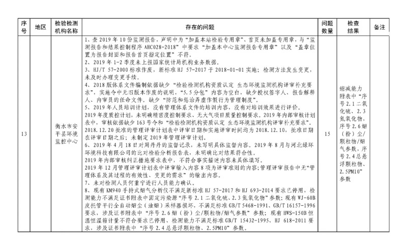 57 | 衡水 | 景縣盛科室內檢測有限公司 | 12 | 整改(暫停) |