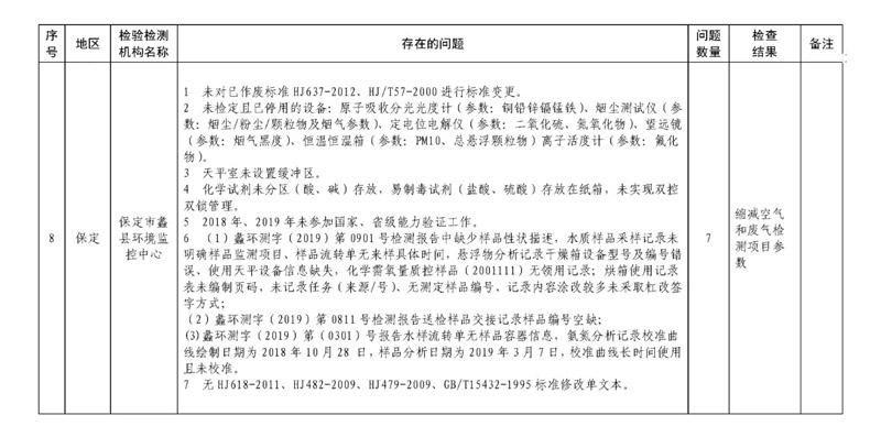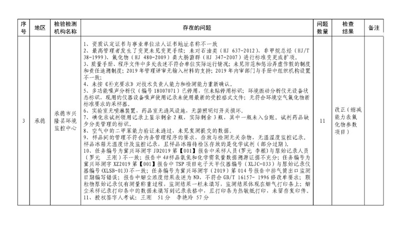 19 | 承德 | 承德市圍場滿族蒙古族自治縣環境監控中心 | 10 | 整改(暫停) |